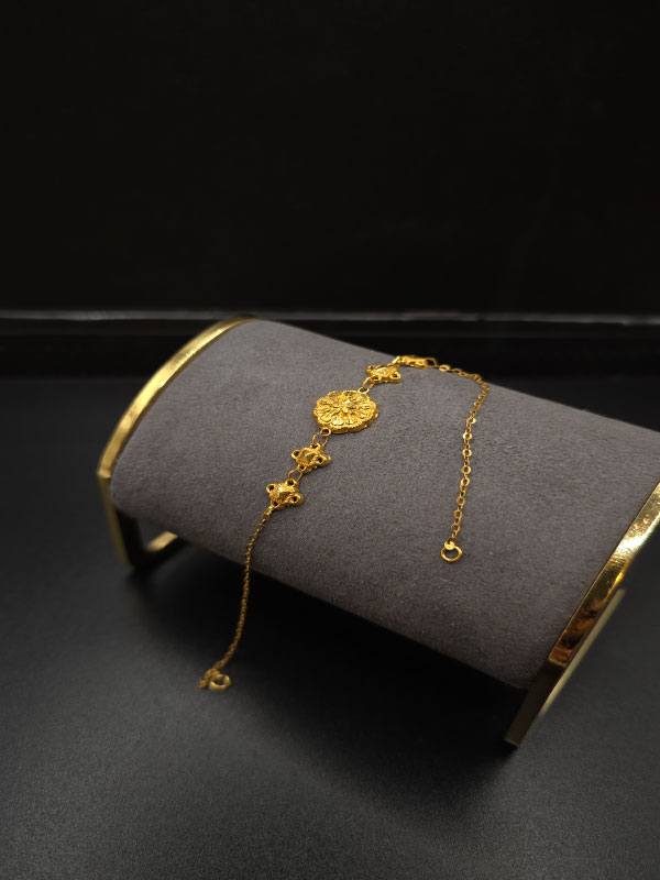 هذه الاسواره مصنوعة من ذهب عيار 21، والذي يُعتبر من أعلى درجات الذهب المستخدمة في المجوهرات. بوزن 0.85 ملي، يعكس هذا المنتج الوزن المثالي الذي يوازن بين الحصول على القطعة الذهبية الفاخرة وبين سهولة ارتدائها يوميًا. الجودة العالية لهذه المادة تضمن المتانة والمظهر البراق لفترة طويلة.
