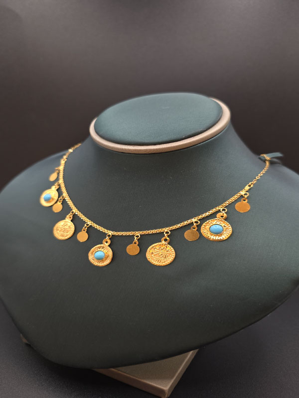 الذهب عيار 21 يعد خيارًا مثاليًا لمن يبحثون عن مزيج بين الفخامة والقيمة. هذا التشوركر مصنوع بدقة لتقديم الجمال والمتانة في قطعة واحدة فريدة. يمنحك ثراء ذهبيًا وتألقًا يلفت الأنظار، ليصبح قطعة مثالية لكل مناسبة محببة.