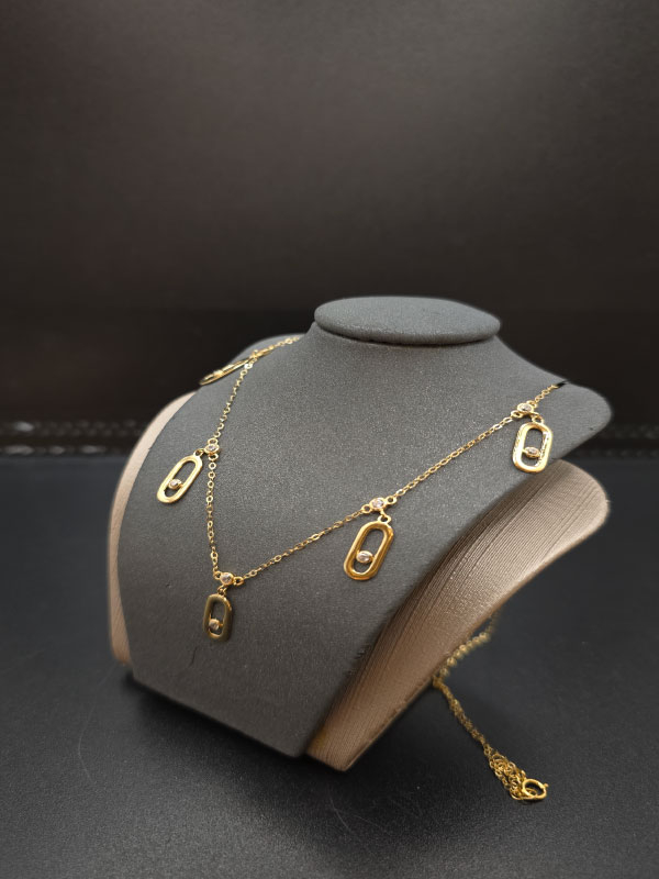 التشوكر مصنوع من الذهب عيار 18، مما يضمن الجودة العالية واللمعان الذي يدوم طويلاً. بوزن 2.5 جرام فقط، يتميز بخفته وراحته عند الارتداء طوال اليوم. تصميمه الدقيق يجعل التشوكر قطعة عملية تلائم إطلالتك الرسمية وغير الرسمية على حد سواء.