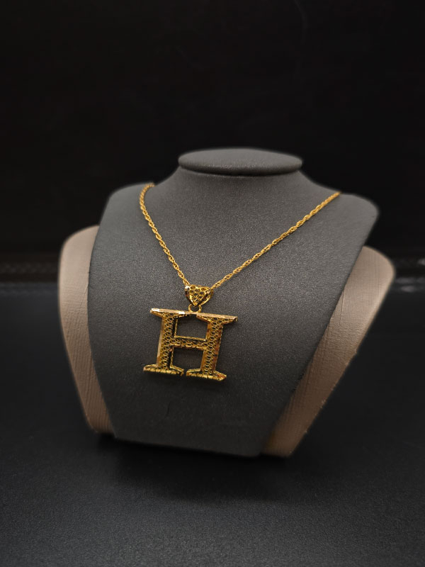 يأتي هذا الحرف H بعيار 21 ليمنحك مزيجاً مثالياً من الجمال والقيمة. تصميمه الراقي يجعله الخيار الأمثل لتكمل إطلالتك أو لتقديمه كهدية مميزة في مختلف المناسبات.