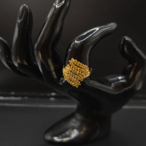 مصنوع من ذهب عيار 21 عالي الجودة بوزن 2.3 جرام، يضمن هذا الخاتم المتانة والجمال البارز. تصميمه يجسد تفاصيل دقيقة تضفي عليه رونقاً استثنائياً.
