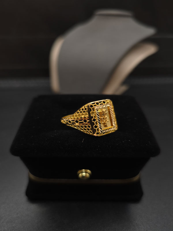 هذا الخاتم الفاخر مصنوع من ذهب 21 عيار ويأتي بوزن 2.5 جرام، مما يجعله خياراً مثالياً للأشخاص الذين يبحثون عن البساطة مع لمسة من الفخامة.