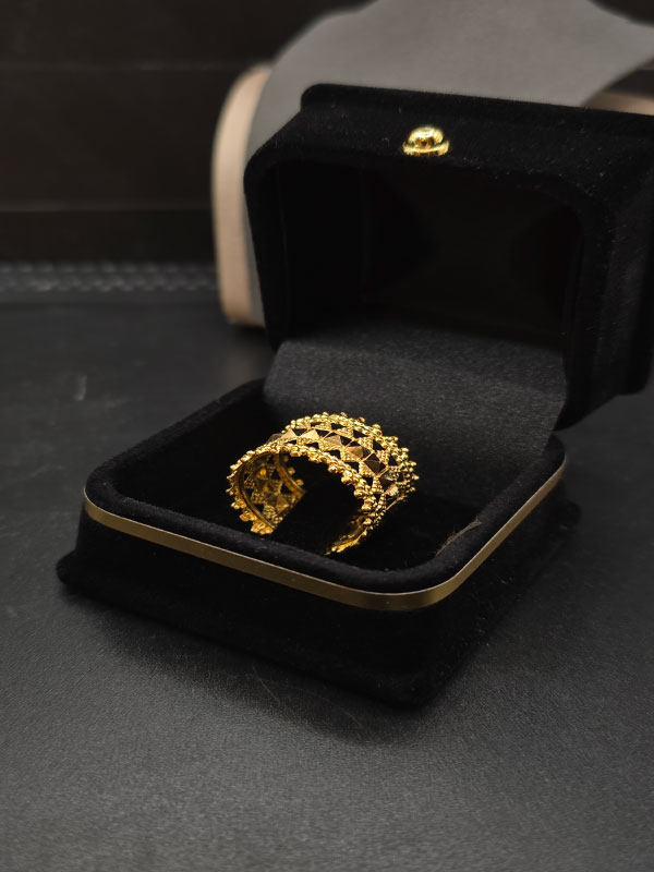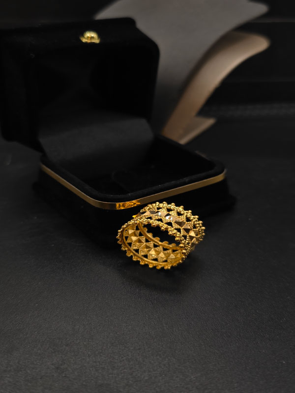 للباحثين عن الأناقة والتميز، تقدم هذه الدبلة عيار 21 بمظهر فاخر يجذب الأنظار بتصميمه المميز. هذه القطعة ليست مجرد دبلة، بل هي تعبير عن ذوقك الرفيع.