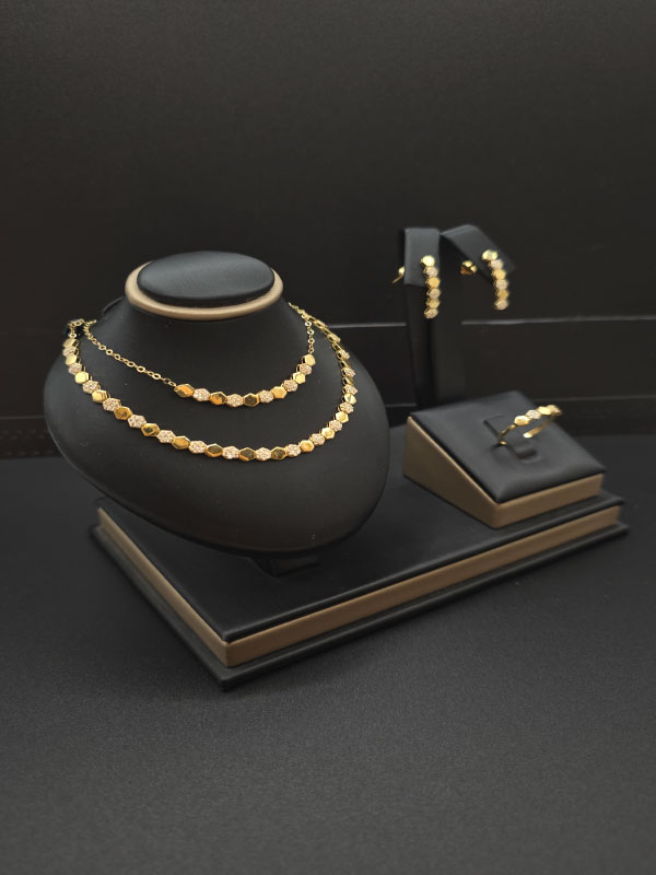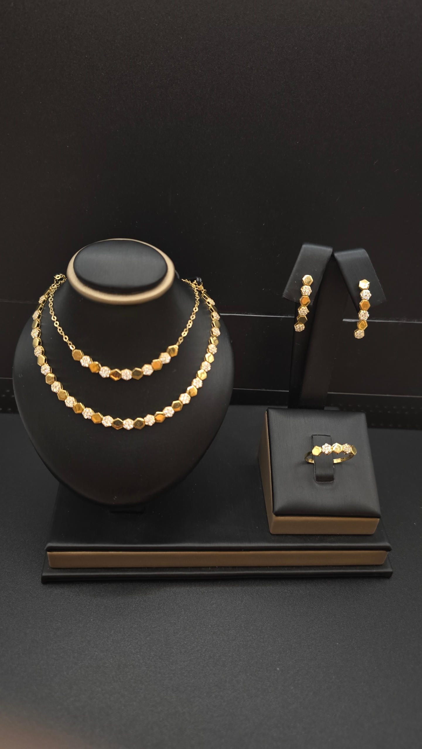 طقم الشوميه عيار 18 هو طقم مجوهرات ذهبي يجمع بين الأناقة والنعومة، ويتميز بتصميم مستوحى من دار شوميه الفرنسية العريقة، مع استخدام ذهب عيار 18 ونقوش وتفاصيل دقيقة تعكس الرقي والفخامة. قد تتزين بعض التصاميم بألماسات صغيرة لإضفاء بريق إضافي، ويتوفر بلون الذهب الأصفر وقد يجمع بين اللونين الأصفر والأبيض