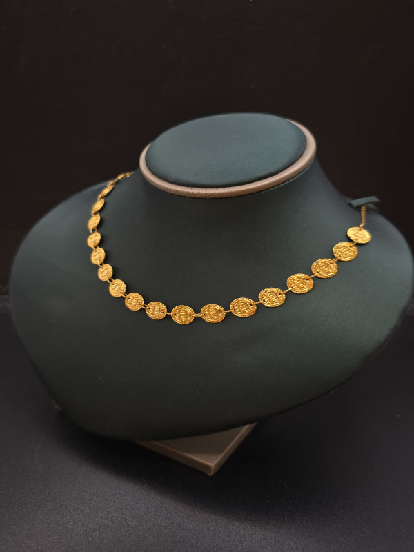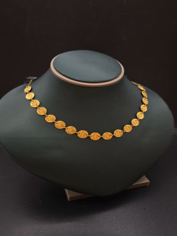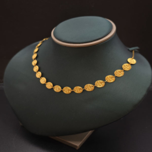 ارتقِ بأناقتك مع عقد الجنيهات الفاخر المصنوع من الذهب عيار 21، بوزن 5.1 جرام. تصميم يجمع بين الكلاسيكية والجمال العصري ليضفي الأناقة التي تستحقها.