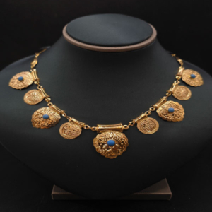 احصل على قطعة مثالية تجمع بين الأصالة والفخامة مع عقد قردانه الفاخر المصنوع من الذهب الخالص عيار 21. بوزن دقيق 5.7 جرام، يُعد هذا العقد رمزًا للأناقة الراقية والذوق الرفيع.