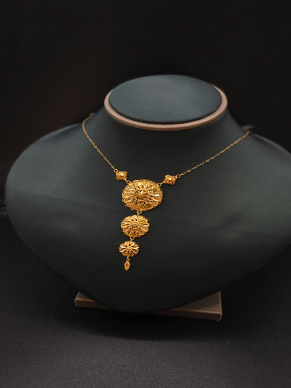عقد كرسي جابر عيار 21 مصنوع بعناية فائقة لتحمل الاستخدام اليومي مع الحفاظ على لمعانه البراق. بوزن مثالي يبلغ 2 جرام، فهو خفيف على العنق ومثالي لأي مناسبة.