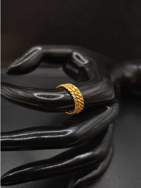 مرامي مبروم فاخر مصنوع من الذهب عيار 21 يعبّر عن المهارة العالية والتصاميم الدقيقة في عالم المشغولات الذهبية. تصميمه الأنيق والمبروم يبرز جمال القطعة ويمزج بين الأصالة والحداثة.