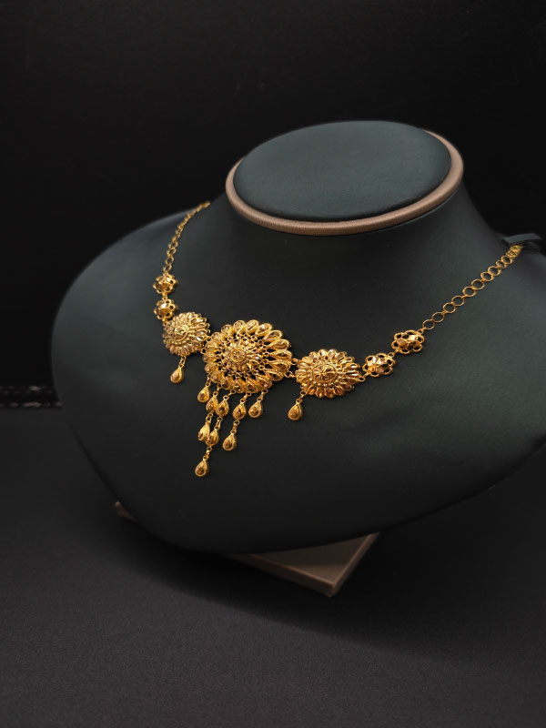 اكتشف مزنط كرسي جابر الفاخر المصنوع من الذهب عيار 21 بوزن 6.1 جرام. هذا التصميم يجمع بين الأناقة التقليدية والتفاصيل العصرية ليبرز جمالك في أي مناسبة.